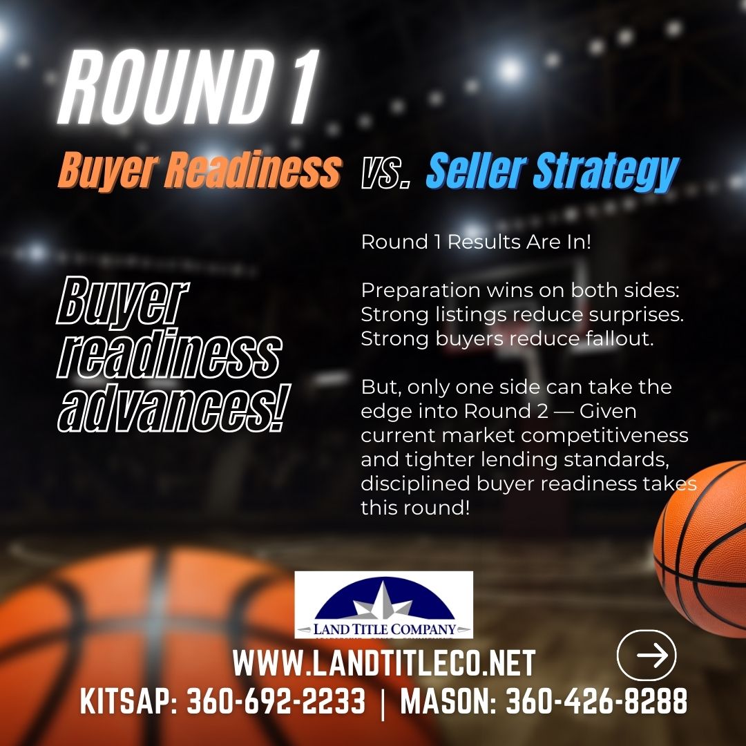 This week, disciplined buyer readiness advances to Round 2, reflecting the reality of today’s market—where strong financing, clear documentation, and buyer preparedness often determine which offer wins.