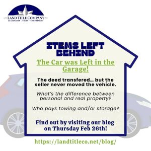 In this post share, from an escrow perspective, what should be considered when items are left behind before or after a real estate transaction closes. Have you had something similar happen with one of your transactions?